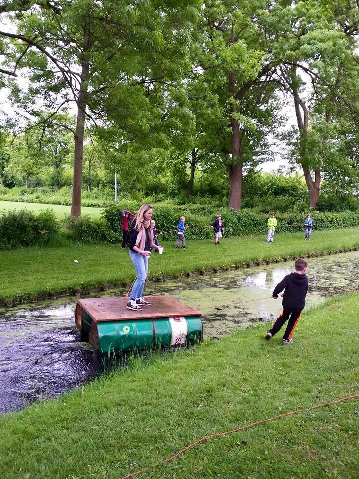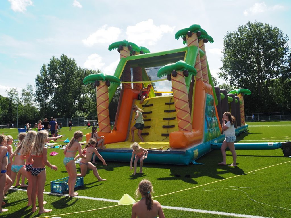 De B-groepen startten met poldersporten. Tijdens het vlottrekken, touwbruglopen en een bootjesrace werden de kinderen goed nat. Maar er werd ook boerengolf gespeeld en er lag een hele hindernisbaan in het Hornmeerpark.