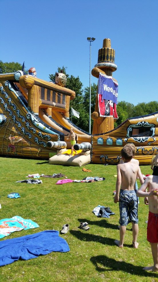 Zondag werden we weer door de welbekende liedjes gewekt, waarna het ontbijt om acht uur klaar stond. De kinderen werden goed ingesmeerd, want de 12-kamp stond op het programma. 12 spellen, waaronder stormbanen, luchtkussens en de oberrace, stonden klaar om de teams tegen elkaar te laten strijden. Een spel is tussentijds stilgezet, omdat er niet genoeg water naar toe kon. Nadat we dit probleem hadden opgelost konden de teams die dit onderdeel hadden gemist, alsnog spelen.